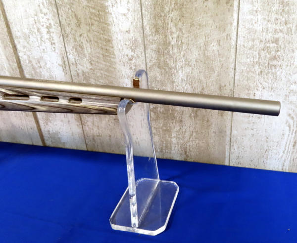 22" Stainless Bull Barrel; grey wood grain laminate stock w/thumb hole grip; scope blocks; removable magazine; smooth action; factory box; mint & unfired; USA; SN#N799384; A-144