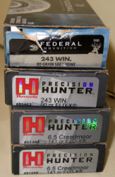calibers range from .264 Win, 6.5x55, 7.65, 6mm Creedmoor; 6.8 SPC & more; few 100 rounds; most are partial boxes; sell for one money
