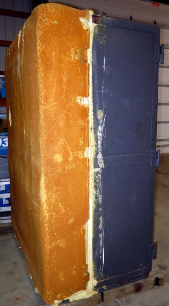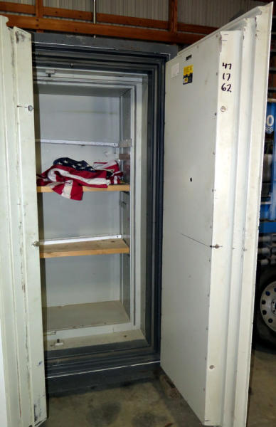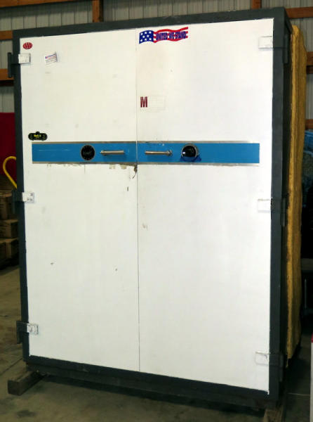 Data Bank Wright Line by Schwab Safe Co.; large double doors w/dial combination lock; outside measures 82"Tx63"Lx38"D; inside is 62"Tx45"Lx22"D; is made to put shelves in or customize it yourself; buyer will receive combination at pickup; extremely heavy, over 3,000 lbs.!; WINNING BIDDER - do not just come and pickup, must give us at least 24 hrs. notice when you'd like to come; NO pickup of this item during the gun auction, we can load it on a trailer with forks.