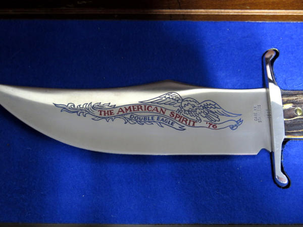6.5" Blade & 11.75" overall; mint; has leather sheath; COA; wood display box; etched blade; box measures 15.75"x6.5"x4";