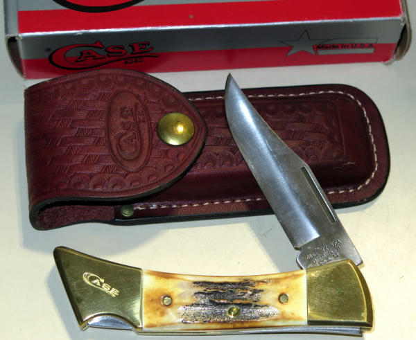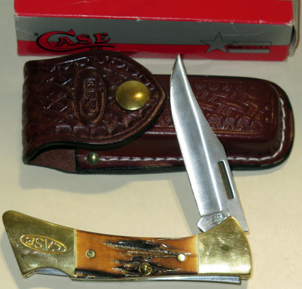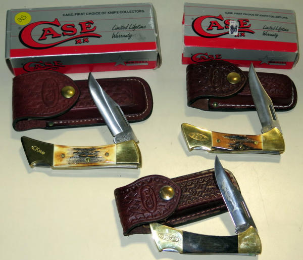 two have stag handles & boxes; all have leather sheaths; all like new; biggest one is 5" long folded; sell 3x the money