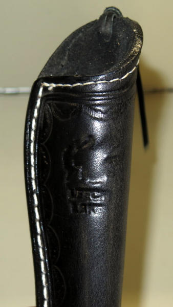 near mint w/leather sheaths; all custom made w/double edge blade; super sharp and beautiful! Green handle one is 12.5" overall