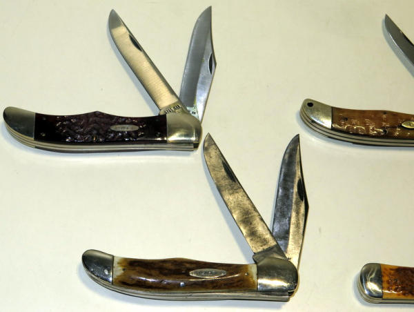 all about 5.25" long folded; Numbers are 61050SAB, 6265SABSS; one is worn and hard to read, looks like 6255SAB; other has no number; all nice used shape; sell 4x the money