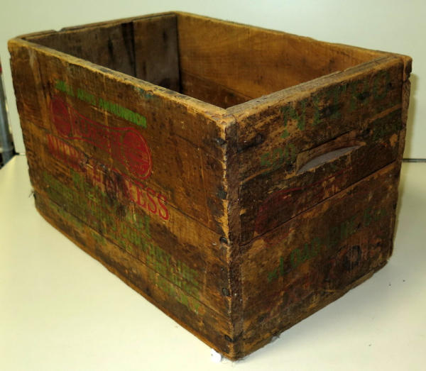 box has some wear; stenciling is hard to read; 15"x9.5"x9"; good bottom