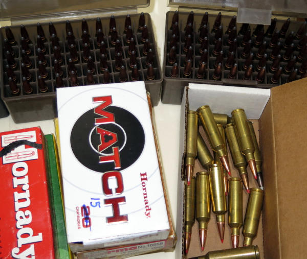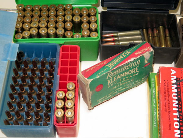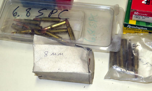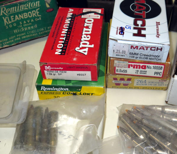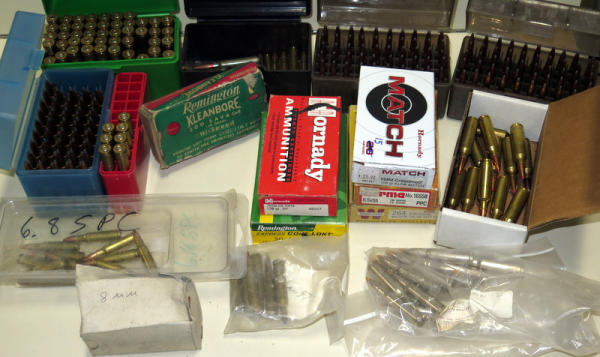 calibers range from .264 Win, 6.5x55, 7.65, 6mm Creedmoor; 6.8 SPC & more; few 100 rounds; most are partial boxes; sell for one money