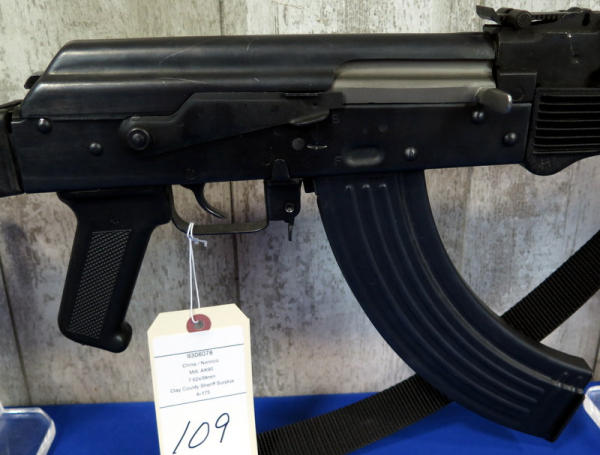 16" BBL; large removable magazine; sling; black synthetic stock, forearm & pistol grip; flip-up adjustable rear sight; nice used condition; China; SN#9306078