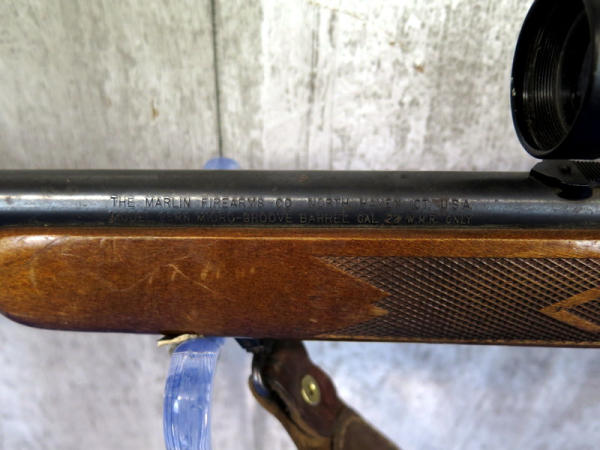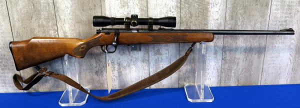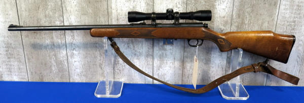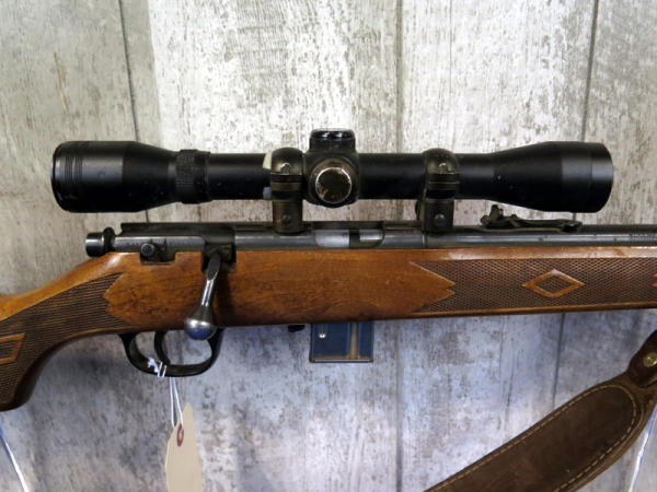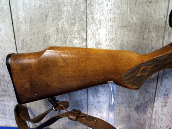 22" BBL; smooth action; removable magazine; Ruger 4x32 scope; leather sling; barrel & receiver has spotting & rust marks; wood has marks from use; could use a cleaning; USA: SN#02303550