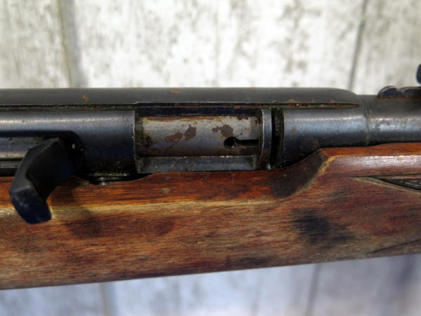 20" BBL; receiver plunger won't close, not sure if it's the correct one or not; missing trigger guard; stock is rough; has some rusting on bolt; USA: SN#C944698