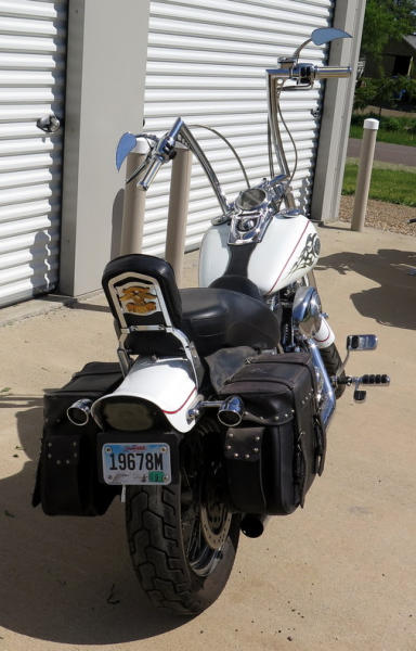 38K miles, Cobra Pipes, 16” Ape Hangers, Custom grips and mirrors, saddle bags, Vin# 1HD1GPW395K314704.
