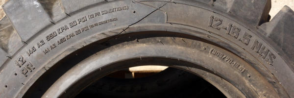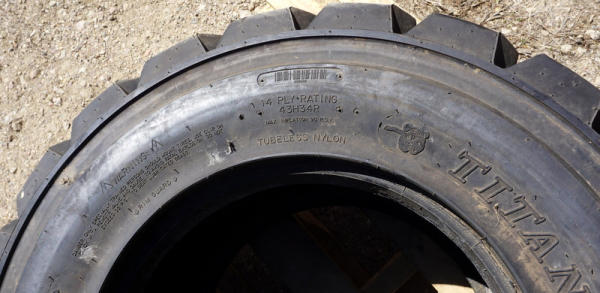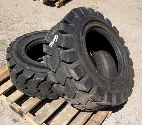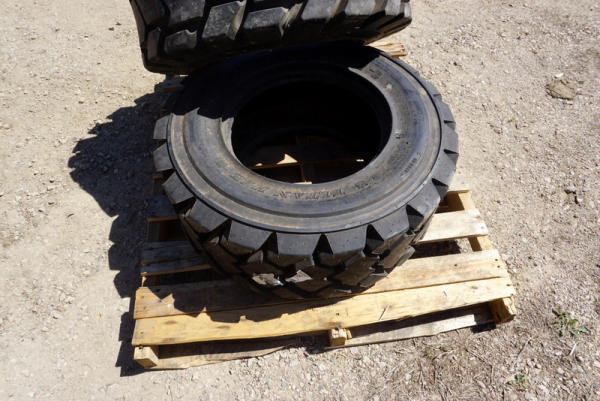 one is brand new, one shows very slight wear; were installed on a skid loader, but were one size off, so seller replaced them.
