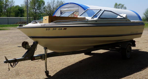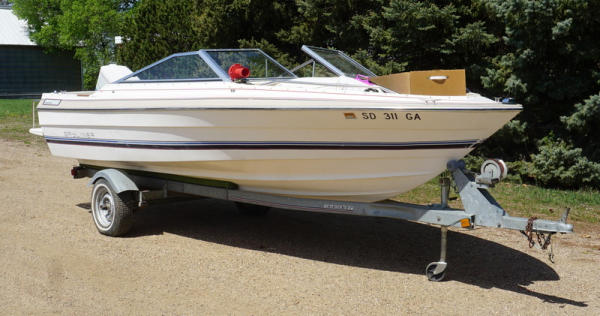 Runs good, but needs a new gas tank and battery, was checked out by the boat mechanic in Viborg. Really clean and nice condition for an older boat. Complete with sunshade top, tarp, tubes, lifejackets, & skis. Good bunk trailer. Applied for lost title, so it might be a few weeks, comes with sellers permit. From the Jon Parsons estate of Viborg, contact Melanie & Jay Parsons at 605-351-3873 with questions.