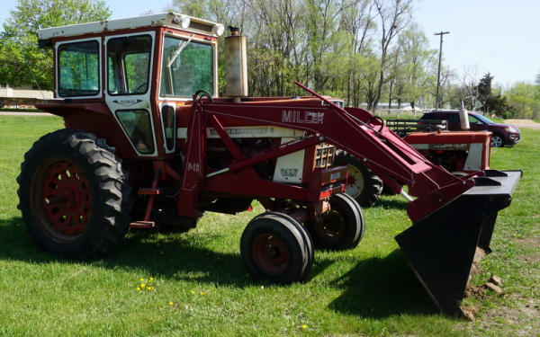 Diesel, 3pt hitch, 2 Hyd outlets, tach is replaced and only shows 33 hours, so actual hours are unknown; Loader is an older Miller P-12 but it is basically brand new and shows nearly no wear, good running tractor; contact Mark Girard (605) 670-9214