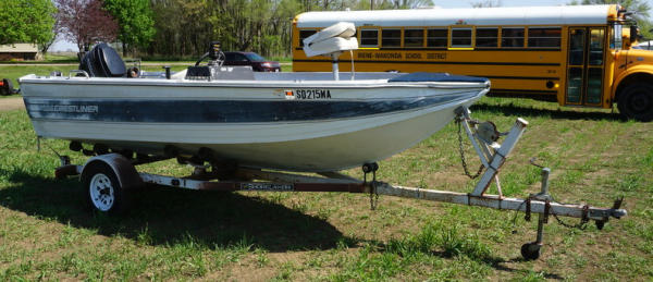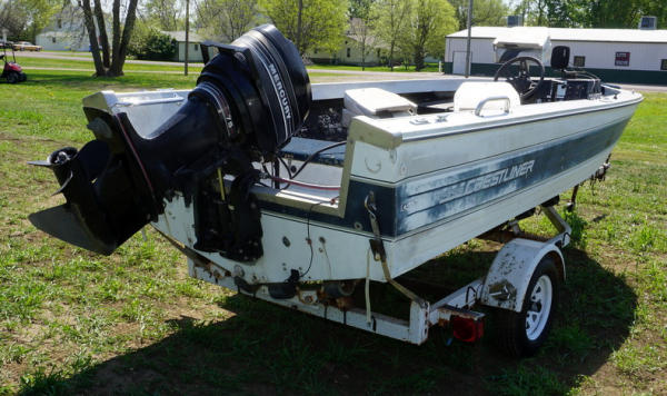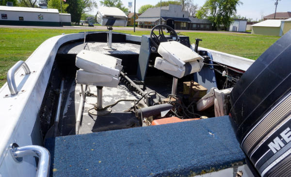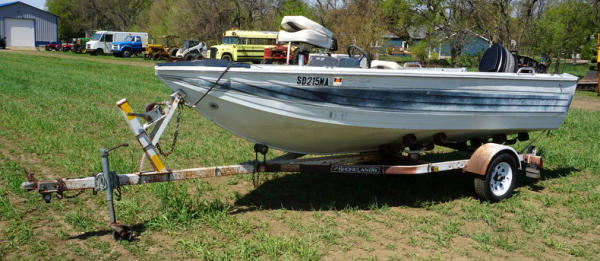 motor runs, has been sitting out, comes with some life jackets and stuff, has titles for both the boat and trailer