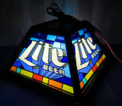 uses 4-florescent rounds bulbs; needs a cleaning; lights up; 29"x22"