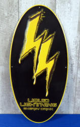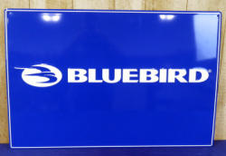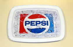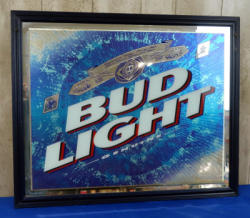 has a crack above the bow-tie logo; faded; needs a cleaning; lights up; 25"x12"