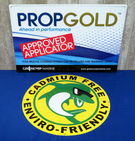 Martyr is anode products for saltwater marine motors; both nice shape; Martyr sign is 18" diam; sell for one money