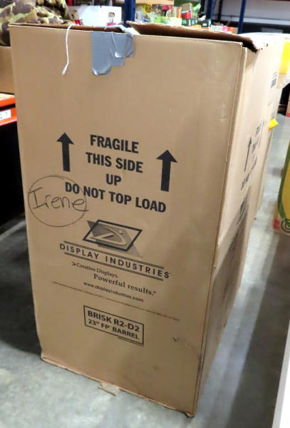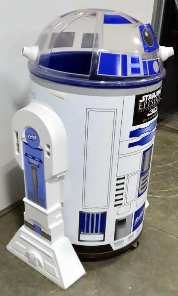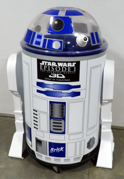 NIB; promoting Episode I - The Phantom Menace 3D; never been used; one leg the adhesive has come loose, easy fix; 44" tall; on casters; neat man-cave item! Is NOT electric, just a cooler; prefer no shipping do to oversize package will be expensive to ship!