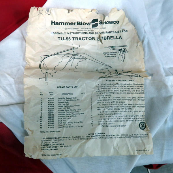 NOS, has original instruction sheet; no pole, just the cloth umbrella