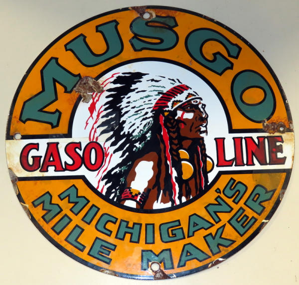 Iconic Indian Head Logo; has chips on edges and some discoloration that might clean off; no maker; 12" diameter
