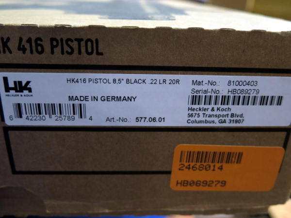 8.5" BBL; one magazine; Mint & unfired; original box; flip up sights; picatinny rail; made in Germany; SN#HB089279; 9-926