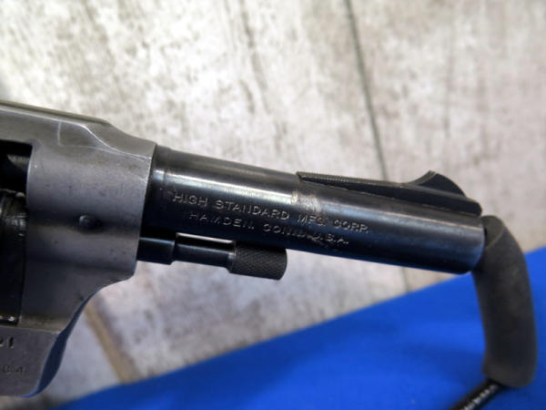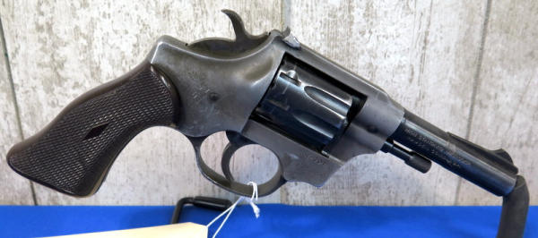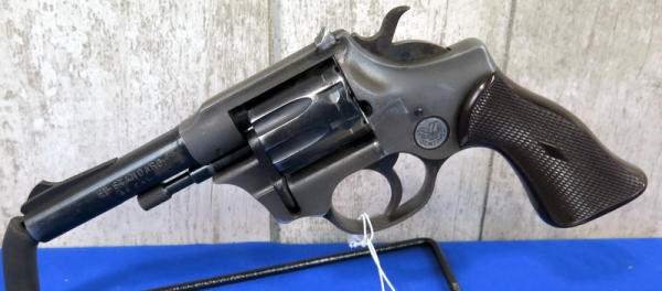 4" BBL; 9-shot swing out cylinder; plastic checkered grips; bluing loss on the barrel; USA; SN#901804; A-191