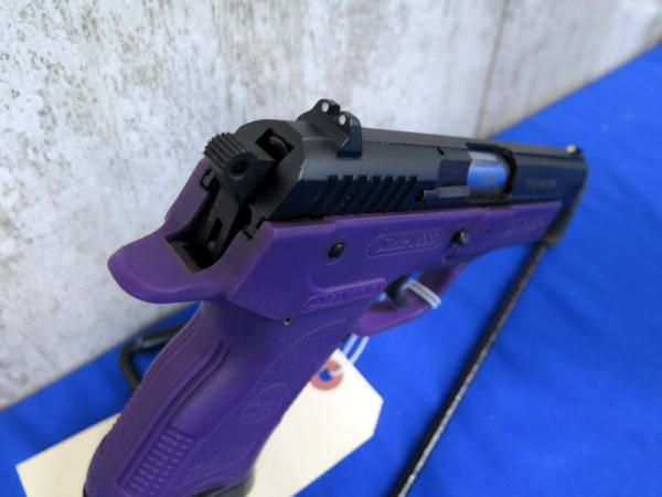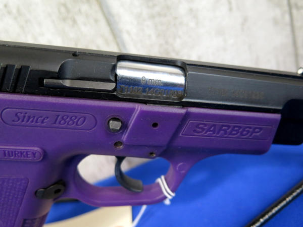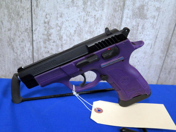 3.75" Stainless Barrel; Purple synthetic frame w/steel slide; night sights; one magazine; like new; Turkey; SN#T110214G01898; A-191