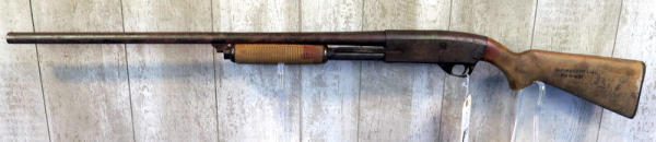 28" BBL; smooth action; has a pink/red residue all over the meta; metal has quite a bit of spotting and surface rust; wood stock finish is worn; 3"; FC; USA; No SN#; A-175