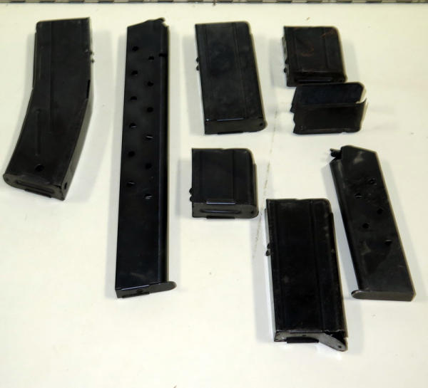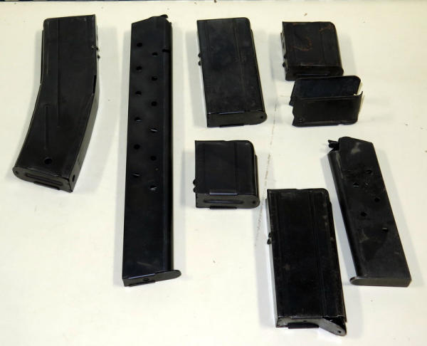 all look like .30 carbine & 9mm; one magazine has damage; all steel; sell for one money