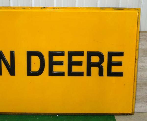 10' long, 5' tall, very good original, just the plastic insert, no metal frame or electrical, some scuffs and scratches form storage, but no major damage; very rare Black & Yellow industrial sign that we have never offered before!