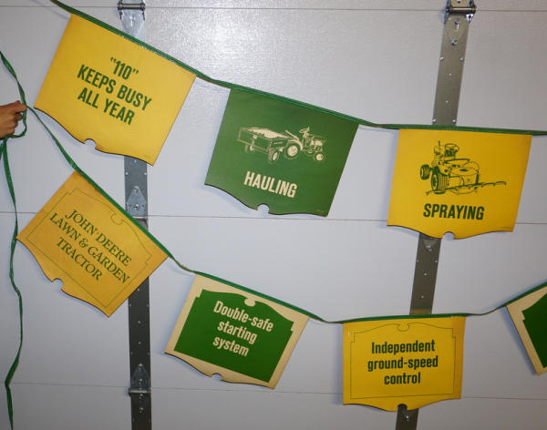 About 12' long or so, has 4 different paper double sided pennants, showing how to use your "110 year round!" Some light aging on the edges, but overall excellent condition. A piece we have never seen or sold before!