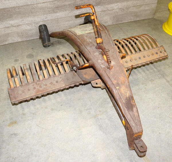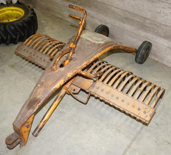 unique, heavy steel teeth, made in Eden Prairie, MN, original, comes in 2-pieces for easier transport, really neat little implement that would look great restored