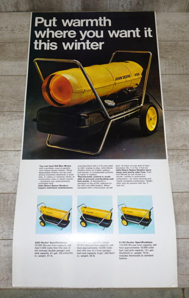 4' tall, 24" wide, great color, heavy cardboard, double sided, it is a little bent, but would look great framed or put up on a wall, some age spots