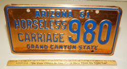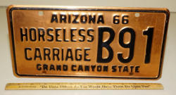 #515 - AZ 1966 Copper Horseless Carriage Plate B91--nice