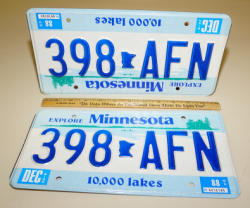 #528 - MN 1988 ERROR Plates--one stamped upside down