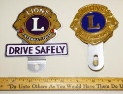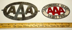 #964 - Lot of Reproduction License Plate Toppers & 2 decorative gas pumps