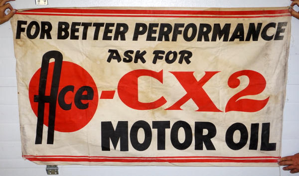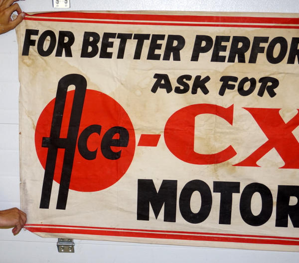 about 5' long, 34" tall, has some age spots and wear, lightweight canvas material, neat piece for the ACE collection!