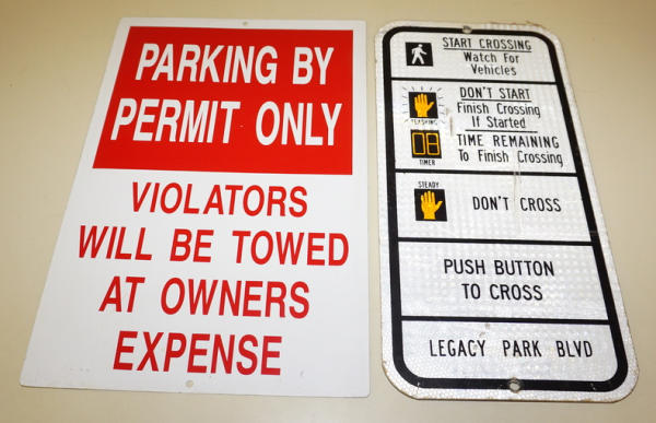 parking is new, crosswalk is used, each about 18" tall, both to go