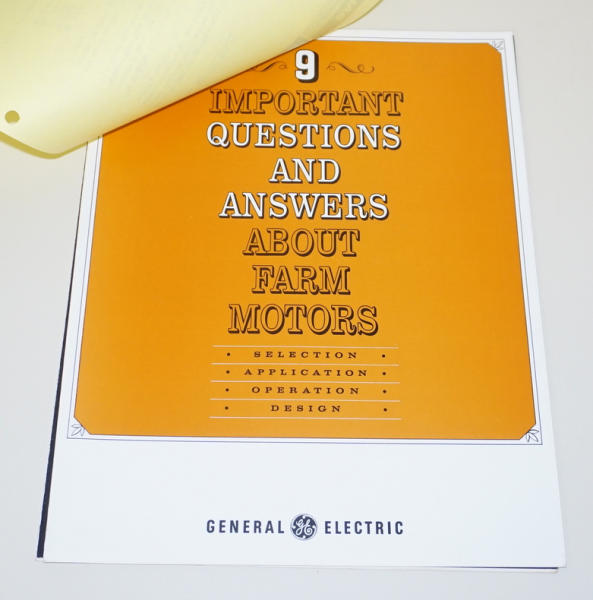 Bulletin dated 4-7-1967, says that JD recommends using GE electric motors on silo unloaders, includes some original GE Brochures too, all stapled together, all to go