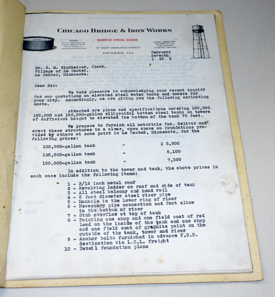sent in 1933 to Le Center, MN; about 20 pages, includes sales info and blue prints, nice condition