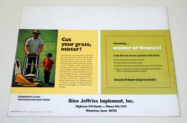 15 Ohio Street, Wakonda, SD 57073400+ Lots--all brands! Lots of great JD, IH, Case, Cockshutt, Orphans, 4-wheel Drives & more! Several pieces of JD Lawn & Garden too!