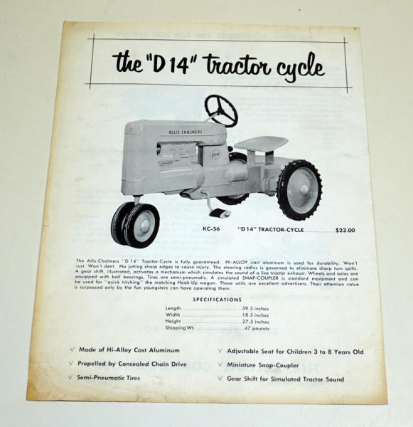 some light wear, neat piece of advertising on a rare pedal tractor