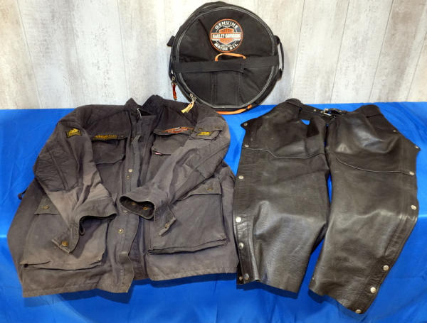 Chaps & cooler are both very nice; Coat has some wear and could use a cleaning; coat is XL;