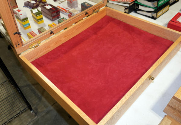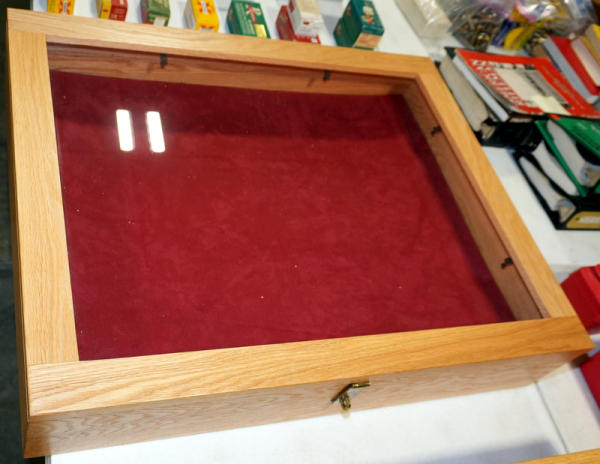 very nice; glass face; wood body w/padded inside; lays on top of a table; 30"x25"x5.5"; LOCAL PICKUP ONLY, no shipping