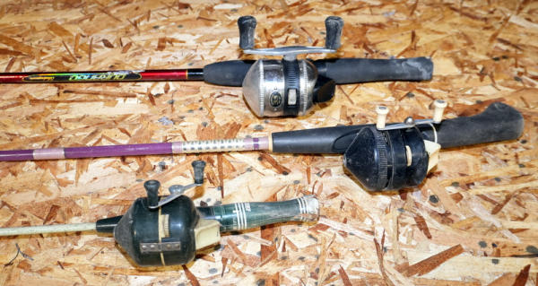 one is very unique w/the reel built into the rod; older and used; need cleaning; sell for one money