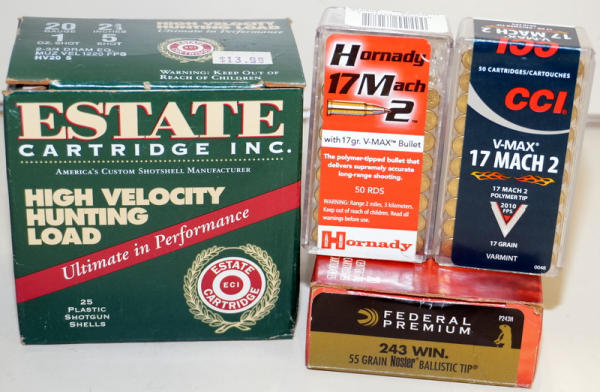 25 rnds 20ga., 18 rnds. 243 & 90 rnds 17M2; all to go one money