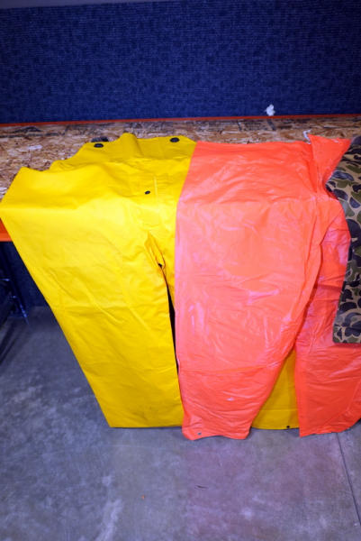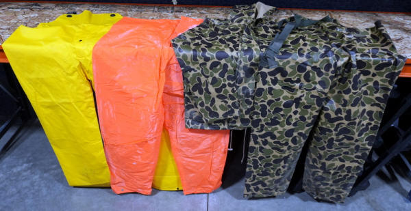 all like new; camo set is Medium; yellow is XXL; all very nice and sell for one money