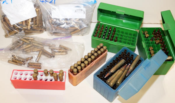 .243 - 20 loaded; .280 Rem 5 loaded, 50 primed brass & 61 brass; .257 Rob. 17 loaded & 10-brass; .22-250 27 loaded, 27 primed & 22 brass; .223 rem 28 primed brass; sell for one money