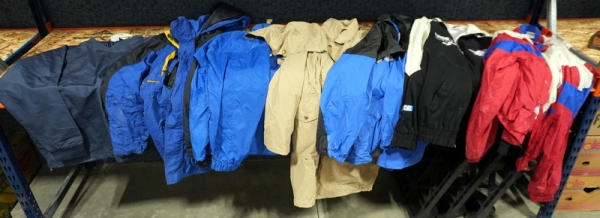 all about XL-XXL is sizes; most have quite a bit of wear and could use a cleaning; sell for one money