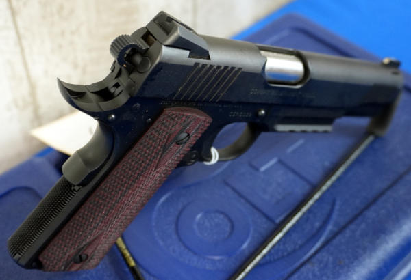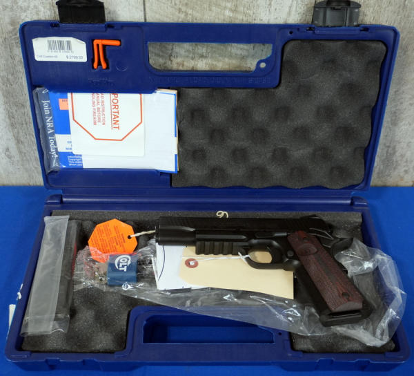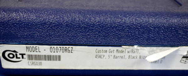 5" BBL; checkered composite grips; 2-magazines; factory hard case; appears mint & unfired; Mdl.0; Trijicon front Night Sight; Black Nitrade Finish; rail in front of trigger guard; USA; SN#CSRG038; A-196