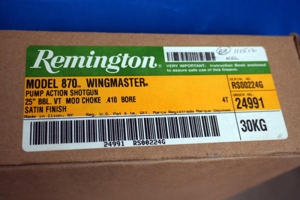 25" VR-BBL; mint & unfired; 2.5" & 3"; MC; factory box; does not have Wingmaster on the receiver but does on the box; USA; SN#RS00224G; A-196